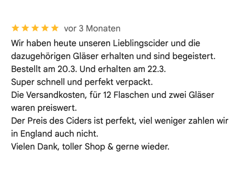 vanillig • aus dem Eichenfass • vollmundig • erfrischend Medium, 6.7 % vol. Dieser schottische Craft Cider reift sechs Monate in ehemaligen Whiskyfässern – und genau das verleiht ihm seine besondere Note. Vanille, Eiche und ein Hauch Honig verschmelzen zu einem angenehm trockenen, gleichzeitig vollmundigen Geschmackserlebnis. Die Reifung erfolgt in Fässern der Glen Moray Distillery und bringt dezente, warme Aromen mit sich. Ein hochwertiger Cider, den du gut gekühlt am besten in ruhiger Atmosphäre genießt. Für alle, die Cider mit Charakter mögen. Thistly Cross Cider ist eine der bekanntesten Cider-Marken Schottlands und steht für traditionelle Herstellung, echte Handarbeit und hochwertige Zutaten. Ihre Spezialität: Fassgereifte Cider mit authentischem Charakter und regionaler Herkunft. Produktmerkmale: apfelweinhaltiges Getränk Hinweis für Allergiker: enthält Sulfite enthält 6.9 % vol. Alkohol Hersteller: Thistly Cross Cider, South Belton Farm, Dunbar, East Lothian, Scotland, EH42 1RG, United Kingdom Hergestellt und abgefüllt in Großbritannien