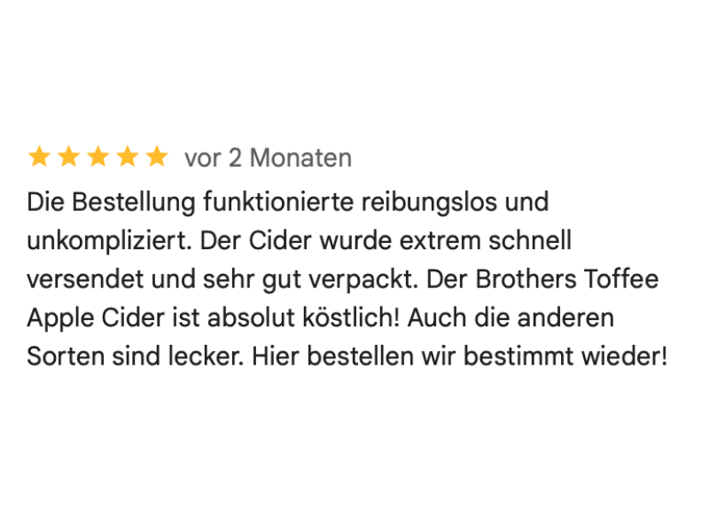 Medium Sweet, 4.0 % vol. Ursprünglich als Halloween-Spezial auf den Markt gebracht, wird Brothers Toffee Apple Cider inzwischen ganzjährig angeboten. Cider, gewissermaßen aus karamelisierten Äpfeln, mit einem Hauch von Vanille - ob's schmeckt? Unsere Kunden sagen eindeutig ja - der Toffee Apple ist ein echter Verkaufsschlager in unserem Sortiment! Eine Mischung aus Sahne, Soda und glimmendem Toffee mit einem reichhaltigen, cremigen Abgang. Bringen Sie Ihre Neugier zum Ausdruck und probieren Sie ihn einfach. Am Besten gekühlt auf Eis servieren. Produktmerkmale: apfelweinhaltiges Getränk Hinweis für Allergiker: enthält Sulfite enthält 4.0 % vol. Alkohol Hersteller: Brothers Drinks Co. Limited, Shepton Mallet, Somerset, England, BA4 5BY Hergestellt und abgefüllt in Großbritannien