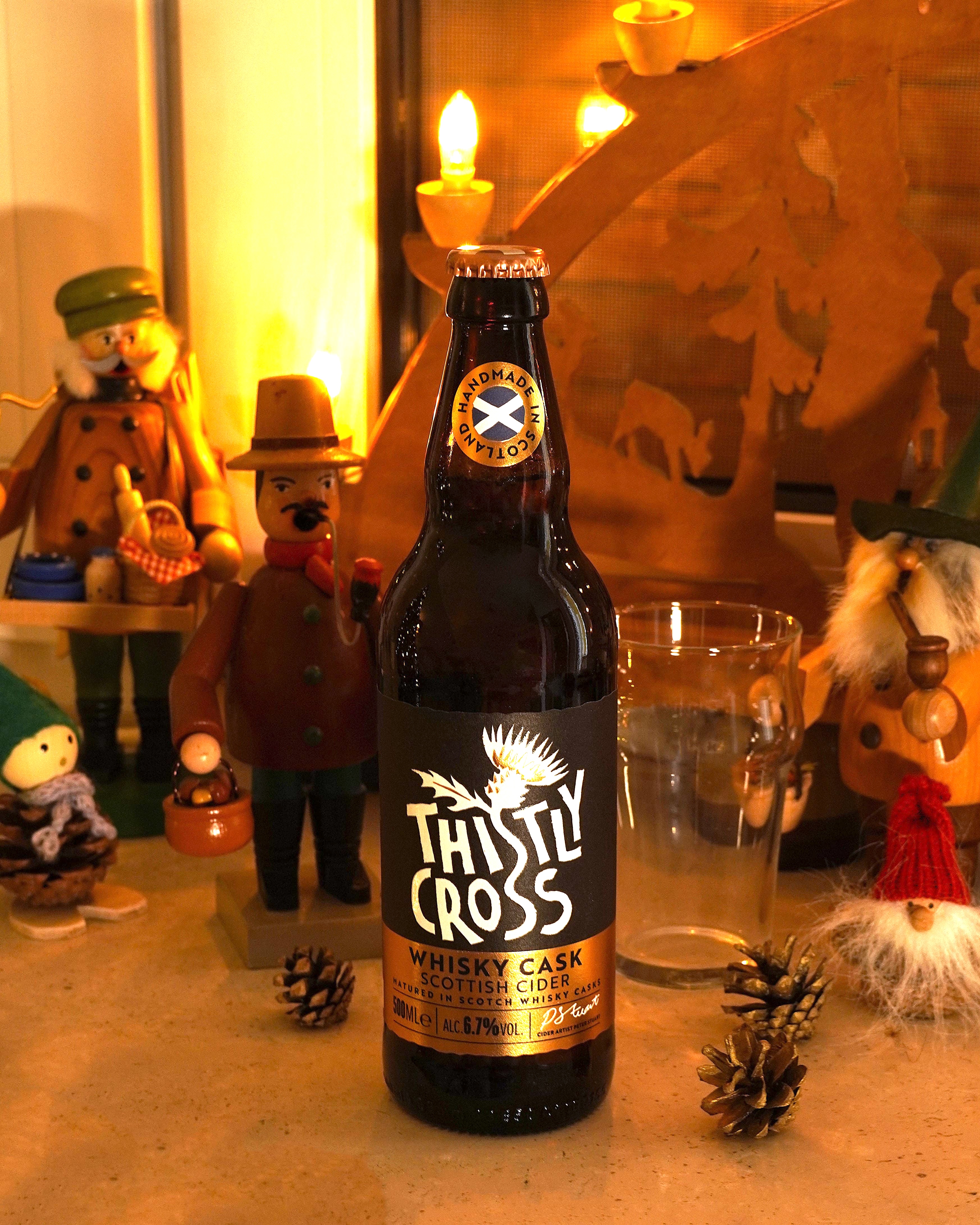vanillig • aus dem Eichenfass • vollmundig • erfrischend Medium, 6.7 % vol. Dieser schottische Craft Cider reift sechs Monate in ehemaligen Whiskyfässern – und genau das verleiht ihm seine besondere Note. Vanille, Eiche und ein Hauch Honig verschmelzen zu einem angenehm trockenen, gleichzeitig vollmundigen Geschmackserlebnis. Die Reifung erfolgt in Fässern der Glen Moray Distillery und bringt dezente, warme Aromen mit sich. Ein hochwertiger Cider, den du gut gekühlt am besten in ruhiger Atmosphäre genießt. Für alle, die Cider mit Charakter mögen. Thistly Cross Cider ist eine der bekanntesten Cider-Marken Schottlands und steht für traditionelle Herstellung, echte Handarbeit und hochwertige Zutaten. Ihre Spezialität: Fassgereifte Cider mit authentischem Charakter und regionaler Herkunft. Produktmerkmale: apfelweinhaltiges Getränk Hinweis für Allergiker: enthält Sulfite enthält 6.9 % vol. Alkohol Hersteller: Thistly Cross Cider, South Belton Farm, Dunbar, East Lothian, Scotland, EH42 1RG, United Kingdom Hergestellt und abgefüllt in Großbritannien