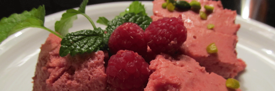 Einige schöne Himbeeren für die Dekoration beiseitelegen. Die restlichen Himbeeren mit dem Saft einer halben Zitrone in einen Topf geben, langsam erwärmen und zu Mus kochen. Das Himbeermark durch ein Sieb streichen und so weiterverarbeiten wie bei der Variante mit den frischen Himbeeren angegeben.