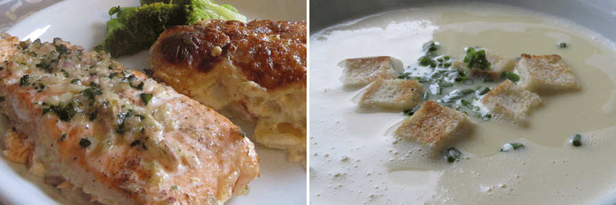 Noch keine Idee, was zu festlichen Anlässen auf den Tisch soll? Dann versuchen Sie sich doch einfach mal an unserem dreigängigen Menü mit Lachs in Cider! Als Vorspeise servieren Sie eine fruchtig-delikate Apfelweinsuppe, gefolgt vom Hauptgang, Lachs in Cider. Die Krönung bildet ein klassisch-englisches Dessert: der Sticky Toffee Pudding. Das Ganze runden Sie mit einem mollig-warmen Cider-Punsch ab. Da soll noch mal einer sagen, Engländer könnten nicht kochen ...