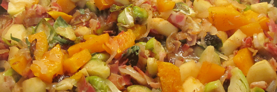 Rosenkohl, Kürbisse und Äpfel: Diese schmackhafte Gemüsepfanne passt ideal in die Herbstzeit.